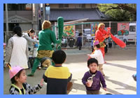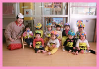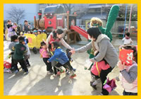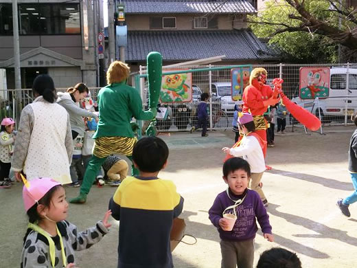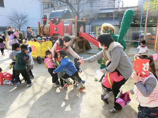 「こわいよ〜」と泣きながらも、みんなで力を合わせて、「鬼は外!!」「福は内!!」 おなかの中の鬼もやっつけて保育園に春がやってきます。