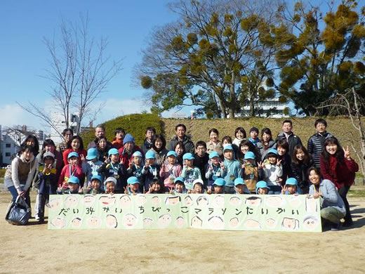 そして、2月。堀の内でマラソン大会を実施。当日は、お家の方も一緒に走ったり、応援してくれたり・・・子どもたちは、一生懸命走りきってゴールイン!!です。