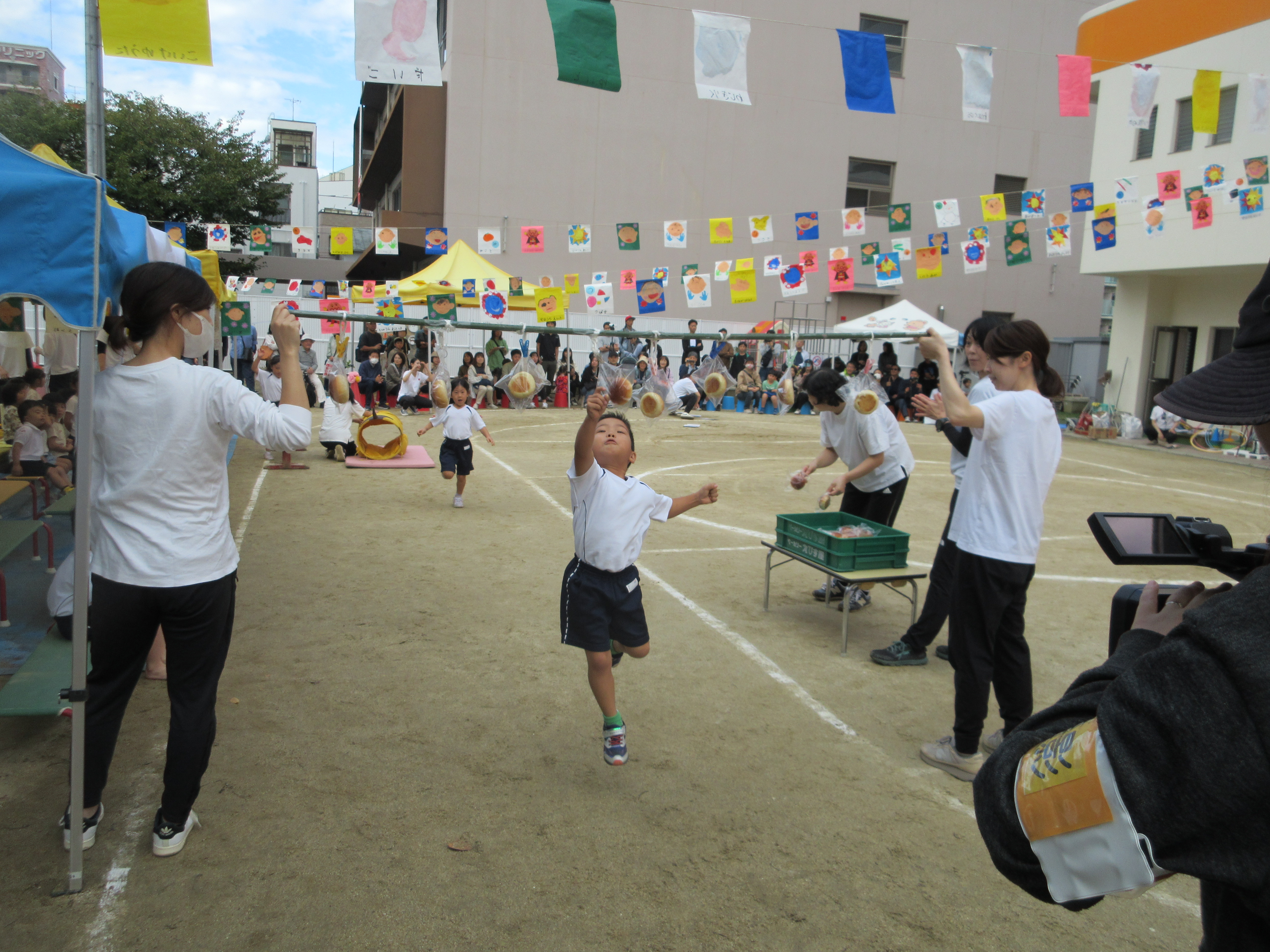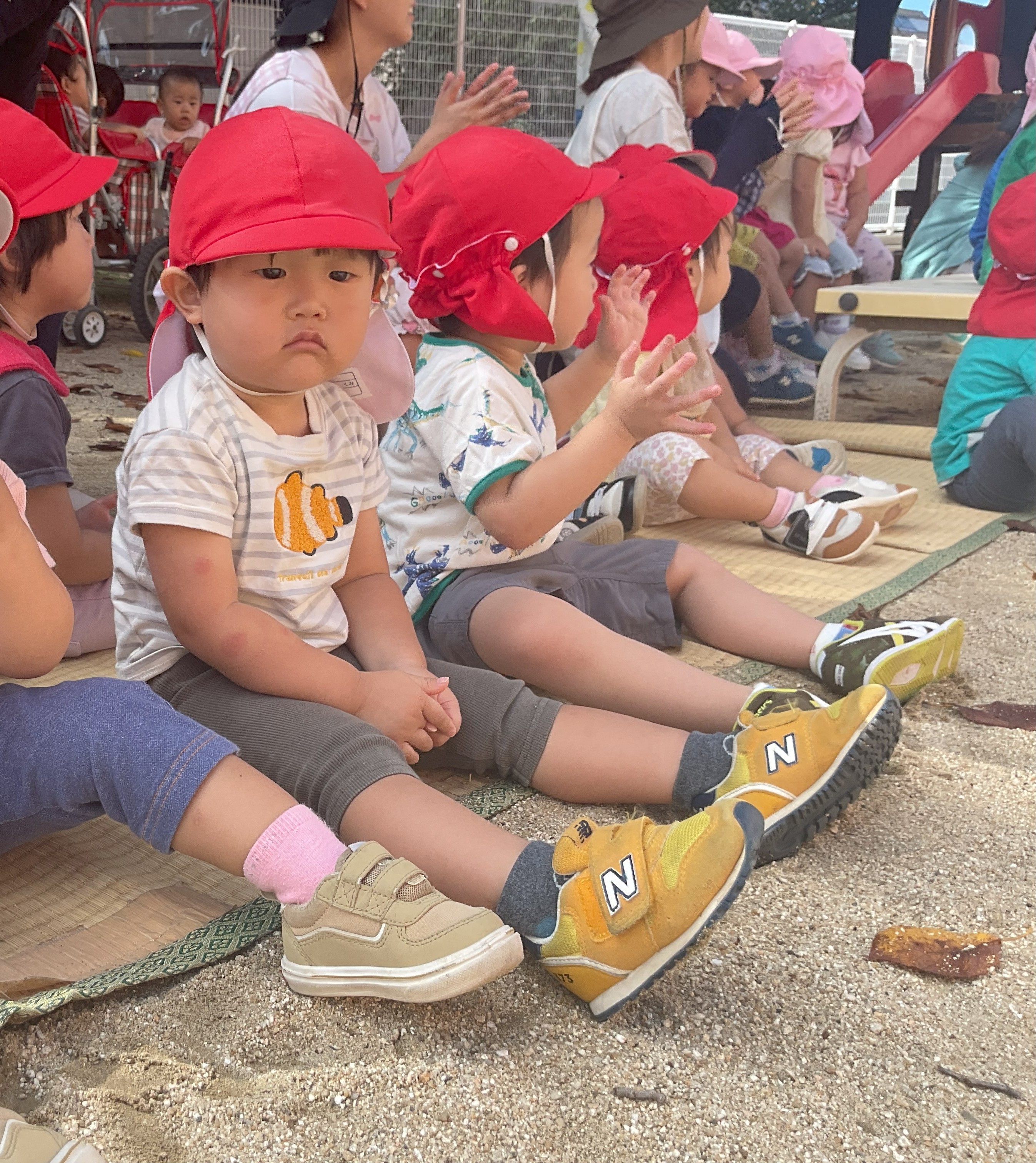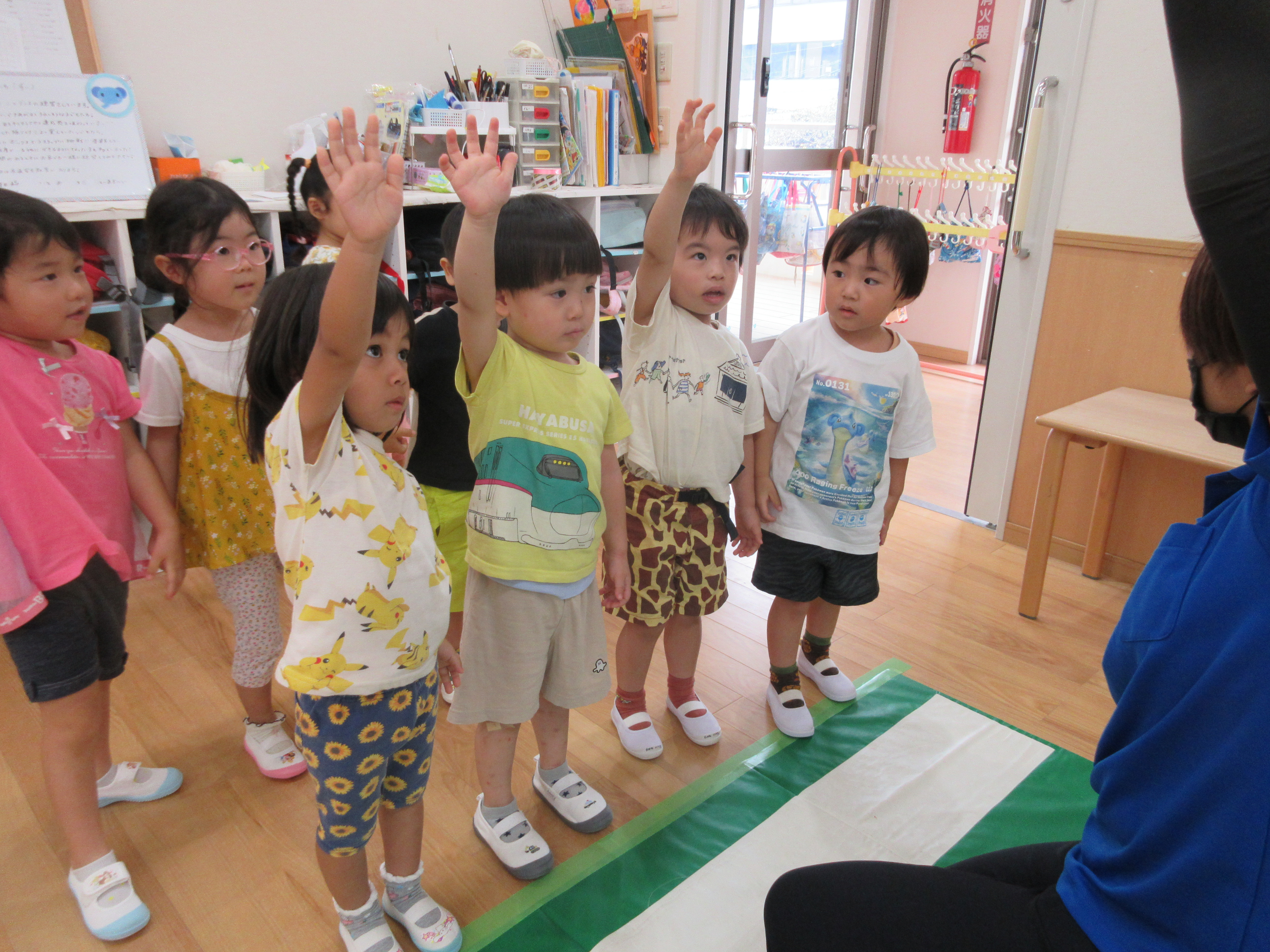保育園でおまつりごっこをしました。「わっしょい!」「わっしょい!」の 元気な掛け声に合わせてお神輿を担いで園庭を練り歩きました。 小さいクラスのお友だちも掛け声に合わせ、手を叩きながら嬉しそうに 見ていました。保育園でもすっかりおまつりモードです♪ |
