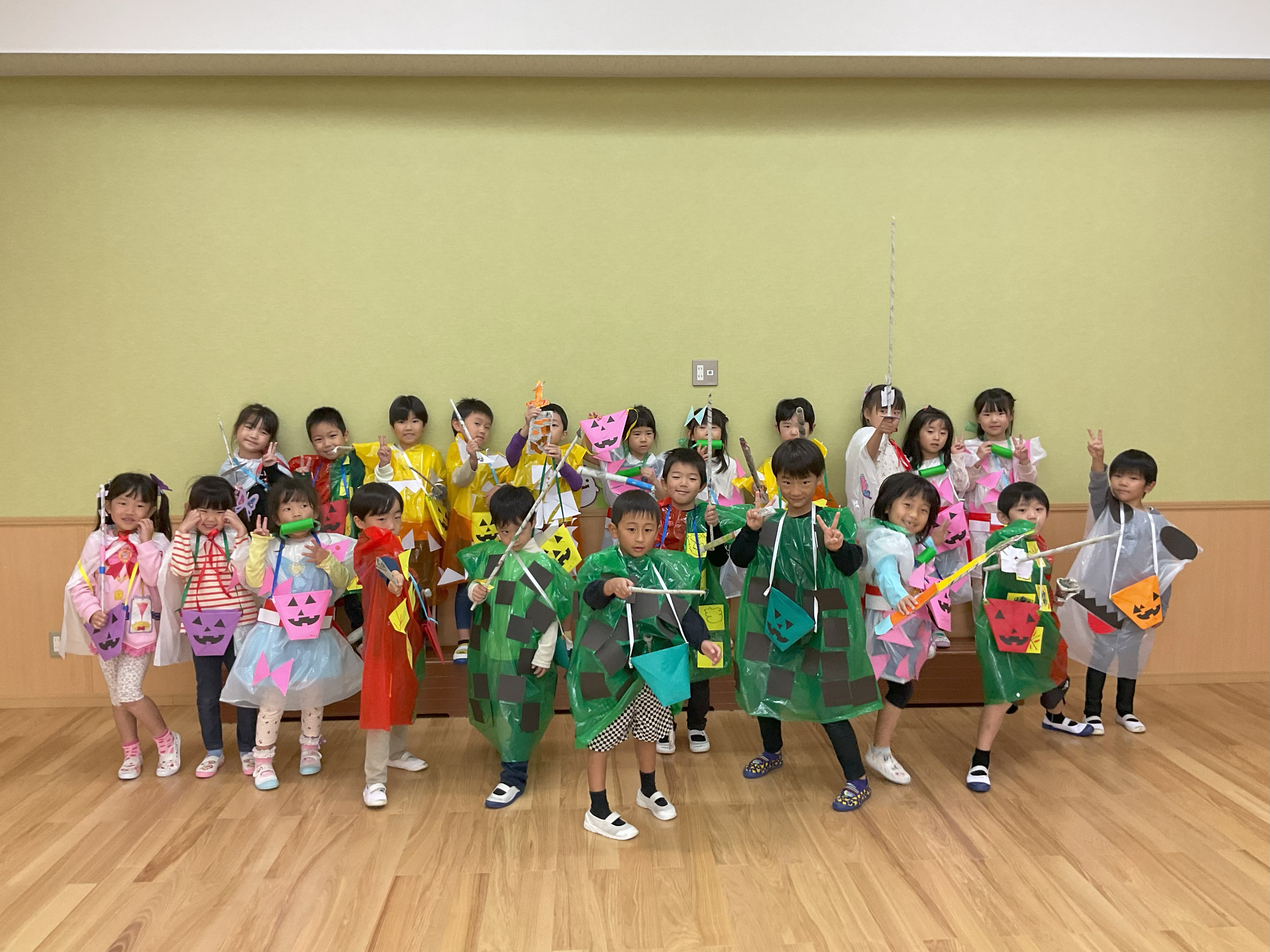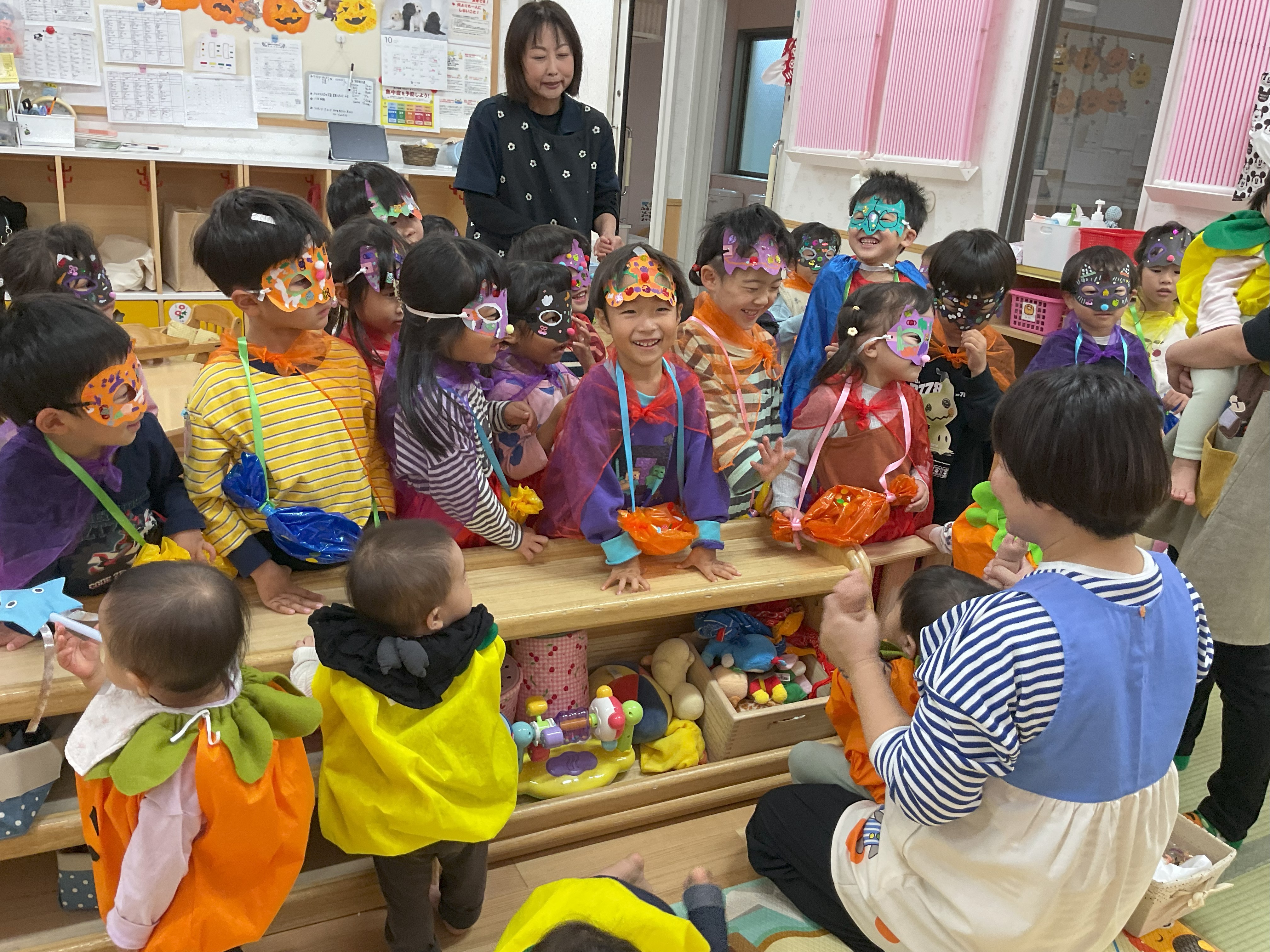 「トリック オア トリート おかしをくれなきゃ いたずらしちゃうぞ〜」 保育園でも子どもたちが仮装をして、みんなでハロウィンごっこを 楽しみましたよ♪