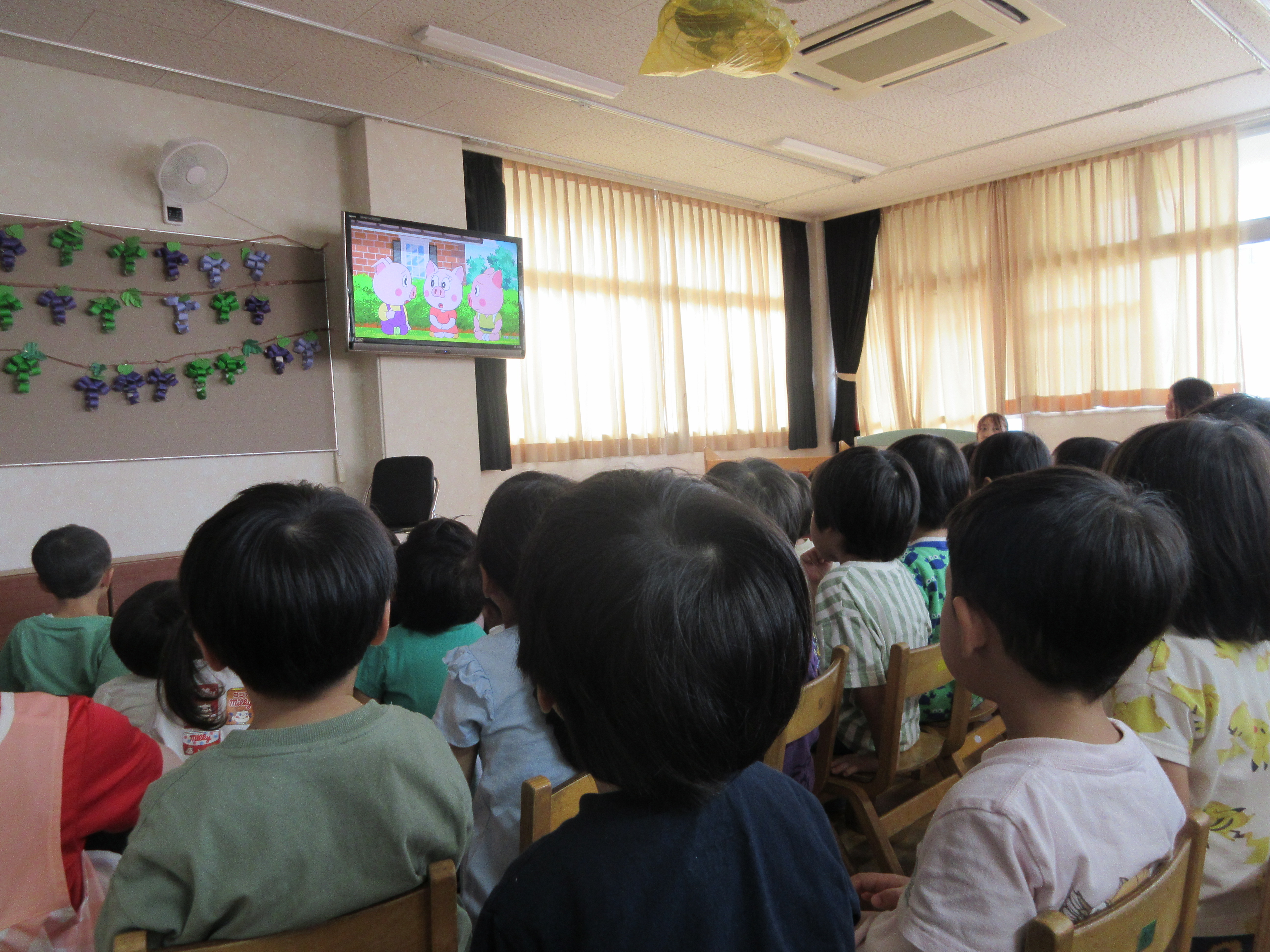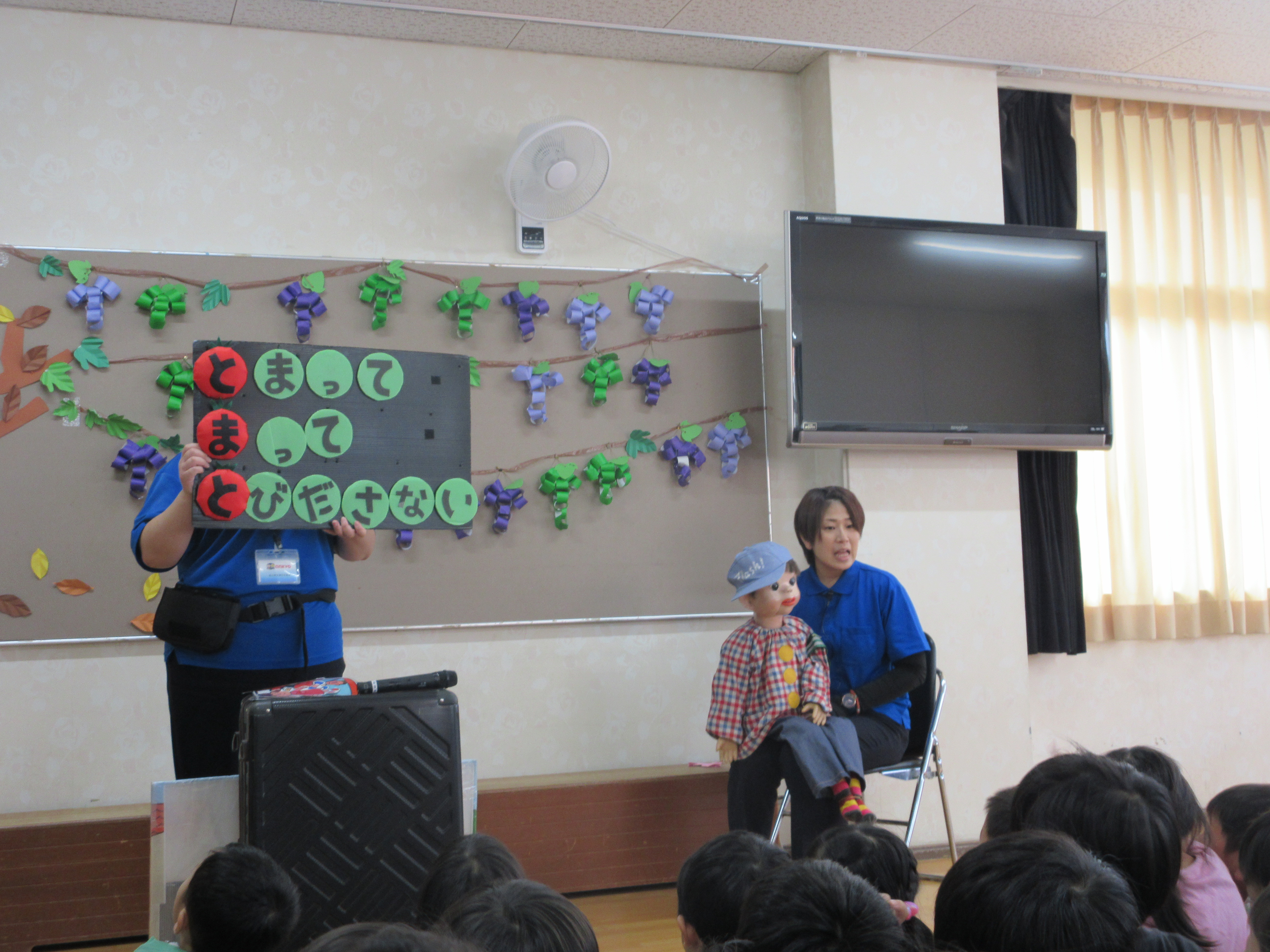 うさぎ〜ぞう組の子どもたちで交通安全教室に参加をしました。 人形の「だいちゃん」というお友だちも保育園に遊びに来てくれ、一緒に楽しく 交通ルールを勉強しました。ビデオ鑑賞やホールで信号や道路を渡ってみたりと、 盛り沢山の内容でした!