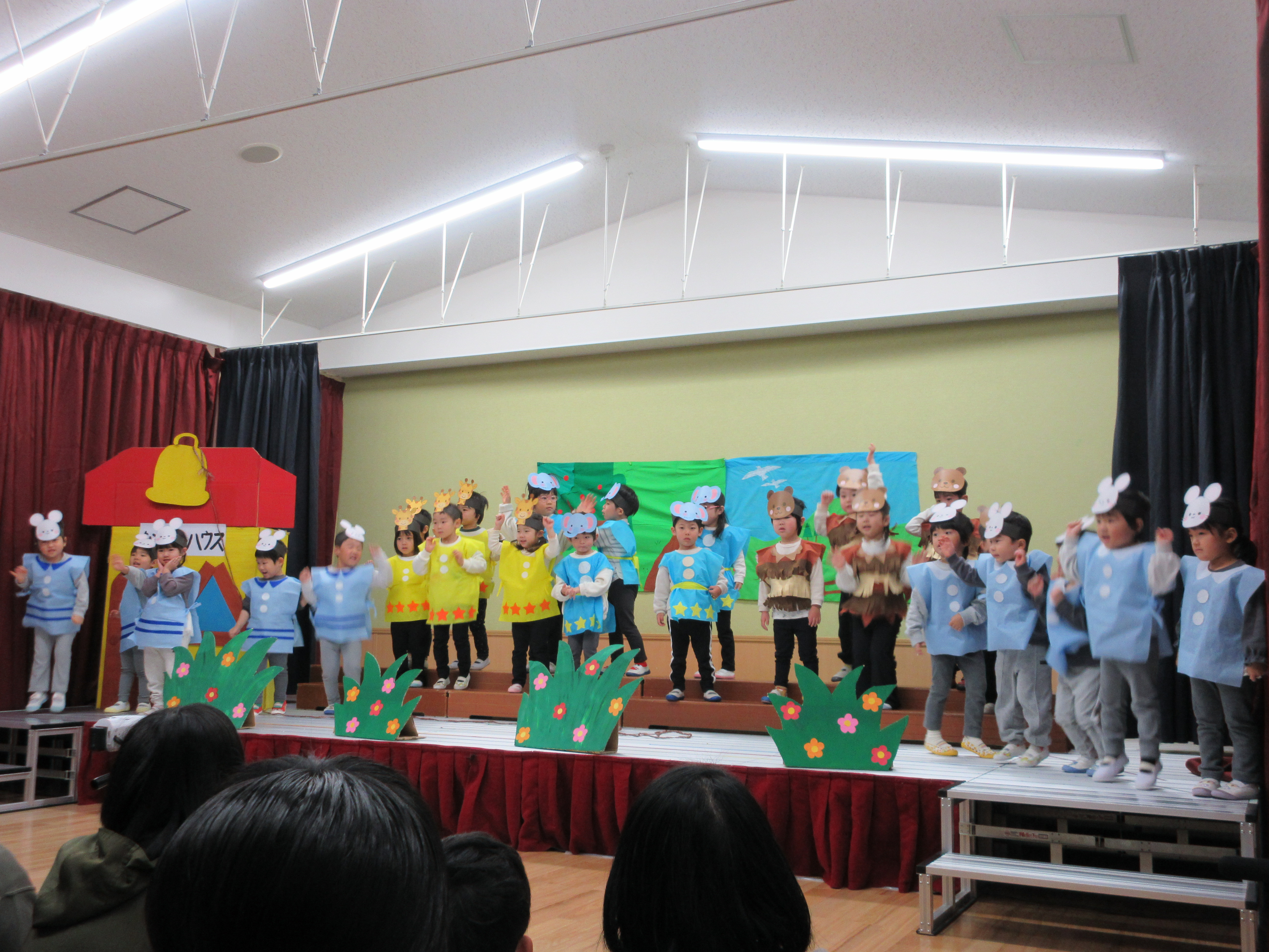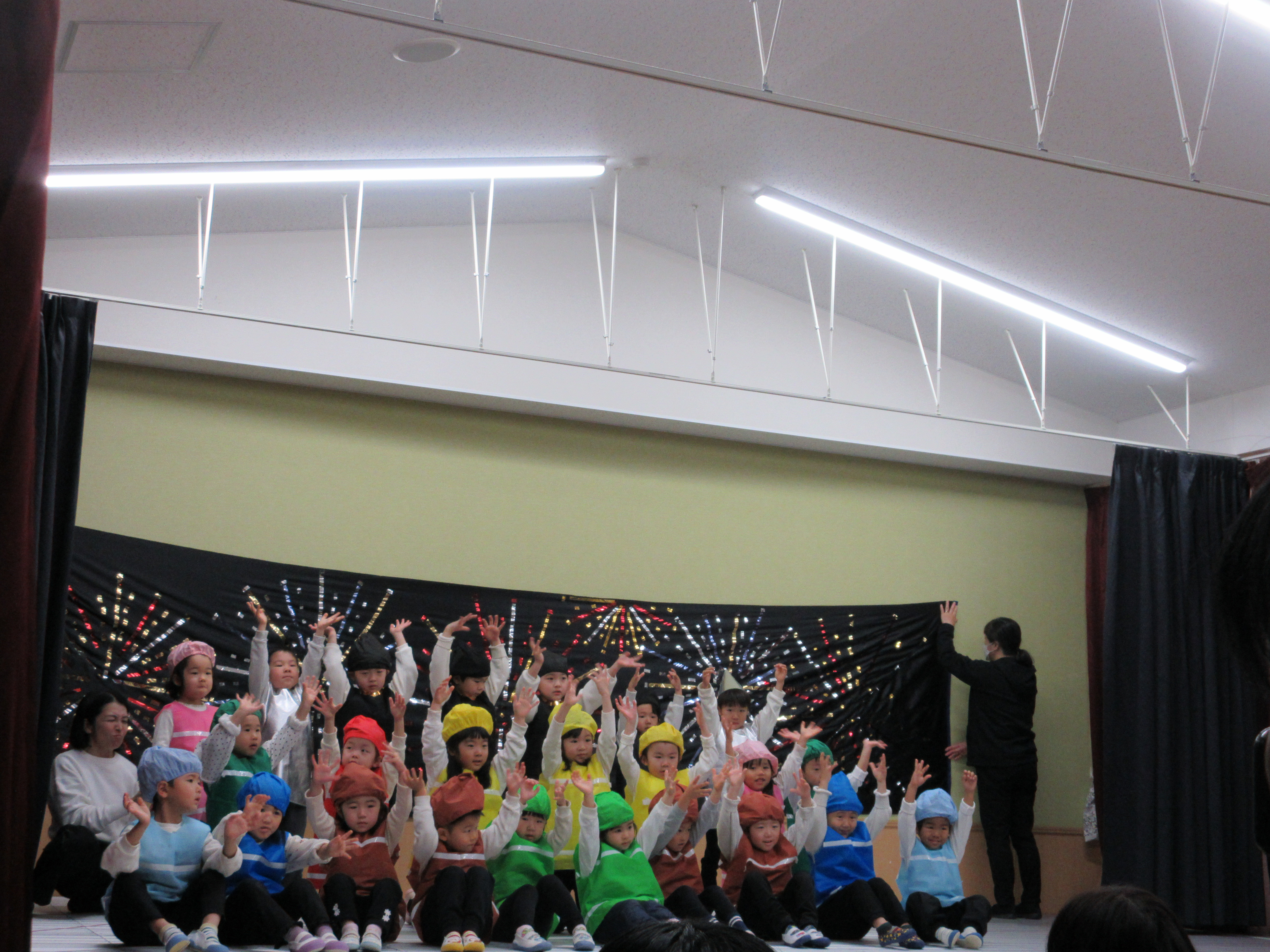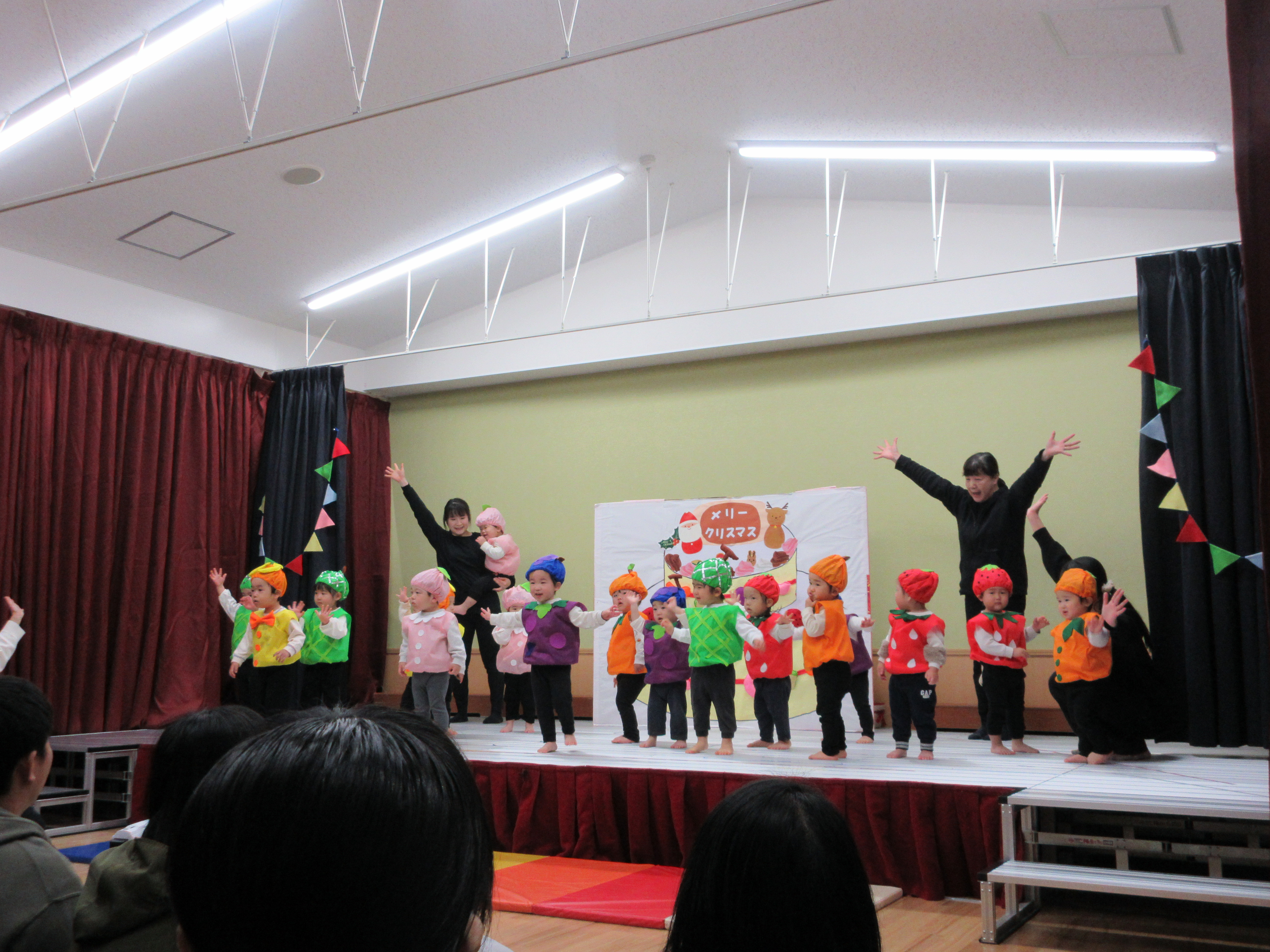 先日クリスマス発表会が行われました。「サンタさん来てくれるかな〜」「あと何回寝たらクリスマス会?」と子どもたちも、クリスマス会やサンタさんに会えることを楽しみにしながら、練習に励んできました。 沢山のお客さんに緊張していたと思いますが、みんなと力を合わせてよく頑張っていましたね!最後はサンタさんに会うこともできて、とっても嬉しそうな子どもたちでした♪ 子どもたちにとって素敵な思い出になっていると嬉しいです(⌒∇⌒)